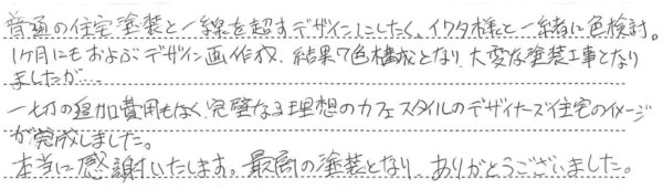 普通の住宅塗装と一線を越すデザインにしたく、イワタ様と一緒に色検討。