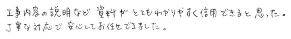 工事内容の説明など 資料がとてもわかりやすく、信用出来ると思った。