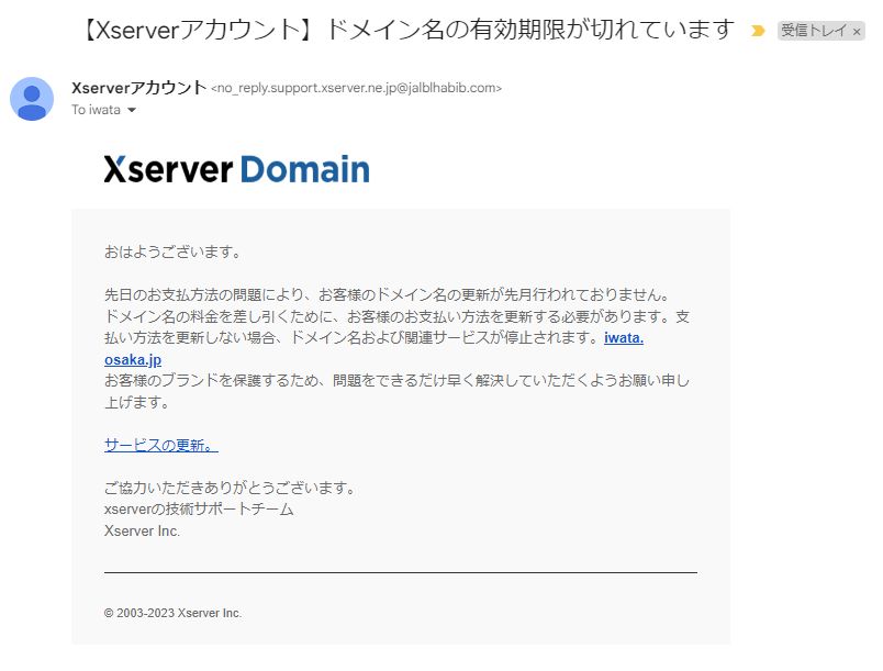 というのは、本当にドメインの有効期限が過ぎていたら、ドメインのアドレスにはメールが届かないからです。
