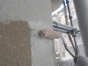 モルタル部には、目止め効果の高いサーフェーサーを塗布します。