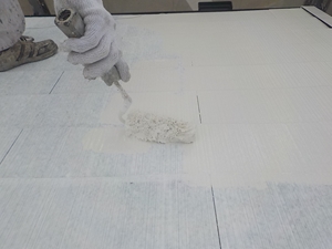 サイディング部には、付着力の優れたカチオン系シーラを塗布します。