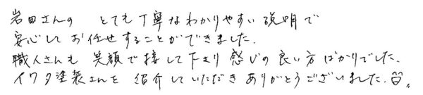 イワタ塗装さんを紹介していただき、ありがとうございました。