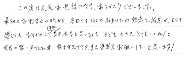 そして、工事後には温かいご感想までお寄せいただき、心より感謝申し上げます。