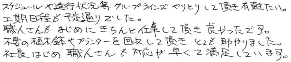 社長はじめ 職人さんも 対応が早くて 満足しています。