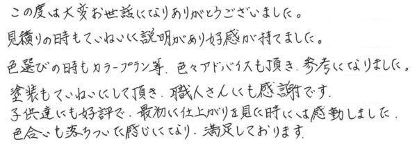 塗装も丁寧にして頂き、職人さんにも感謝です。