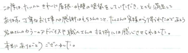 この度は、大変綺麗に屋根・外壁の塗装をしていただき、とても満足しております。