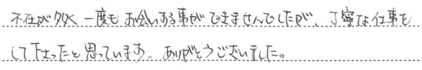 不在が多く一度も お会いする事ができませんでしたが、丁寧な仕事をして下さったと思っています。