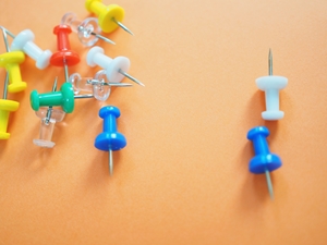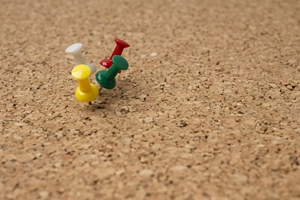 便利なグッズで開けるのは楽しそうなのですが、手元に無かったので、目の前のコルクボードに刺さっている画鋲に目がとまりました (^^)