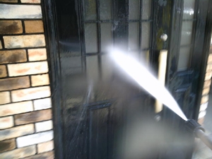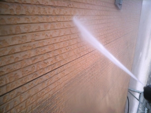 長年付着してきた汚れや古い塗膜を、15Mpaの洗浄機を使って丁寧に洗い流していきます。