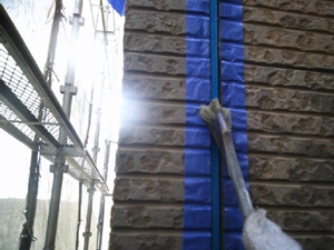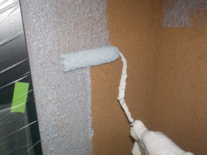 スタッコ下地には目止め効果の高いサーフェーサーを塗布し、それぞれの素材に合った下塗りを行います。