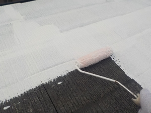 次は屋根の塗装です。屋根は日差しの影響を受けやすいため、今回は夏場の温度上昇を和らげる遮熱仕様で仕上げました。下塗りから中塗り、上塗りまで、一工程ずつ確実に進めています。