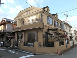 2回目の塗替えの時期を迎え、外壁にチョーキング現象が見られるなど、経年劣化による外観の変化を気にされてご相談をいただきました。美観の回復はもちろん、今後も安心してお住まいいただけるよう、建物の保護という観点からも塗装をご検討されていました。