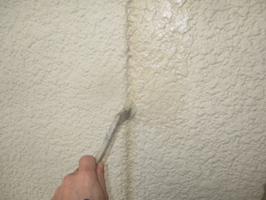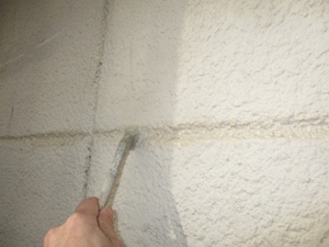 ALCパネルの割れ部分を、コニシボンドのKモルタルで補修し、その後、パターン復旧を施します。
