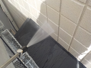 15MPaの洗浄機を使い、長年の汚れや古い塗膜、目に見えない汚れまで丁寧に洗い流していきます。