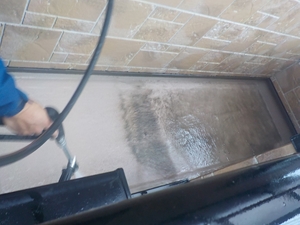ホコリや汚れを高圧水洗機を使って洗い流します。