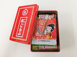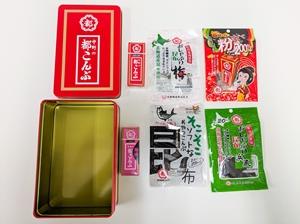 都こんぶ缶、まさかの小物収納として大活躍です。